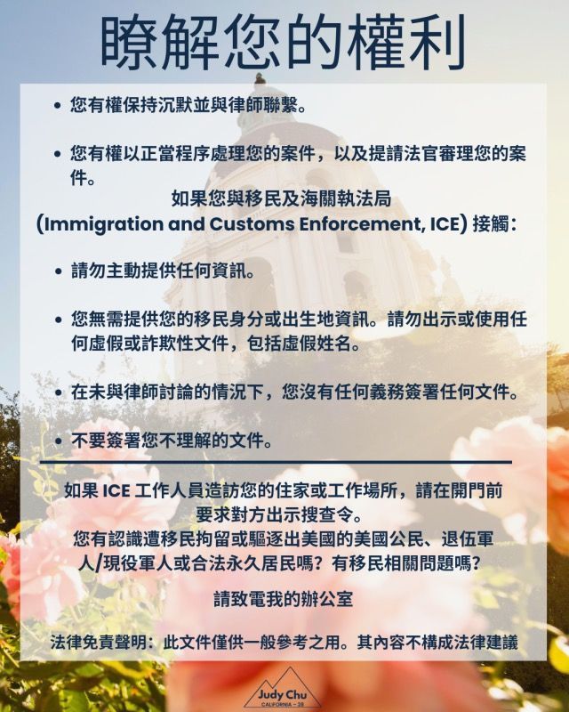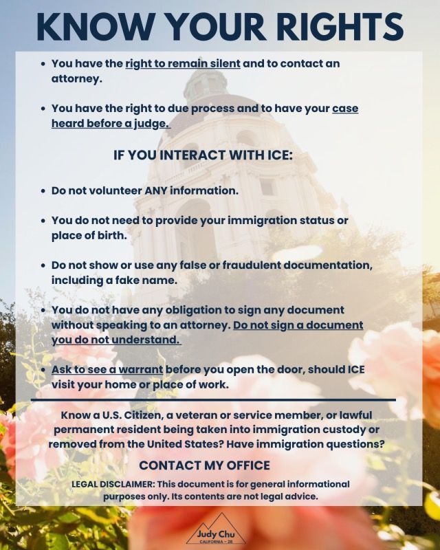 If you are an immigrant, it’s vital to know your rights if you encounter ICE. Watch my video for important information. Please share it, or the graphics below, with anyone who might find it helpful. Together, we can make certain everyone understands their protections under the law.